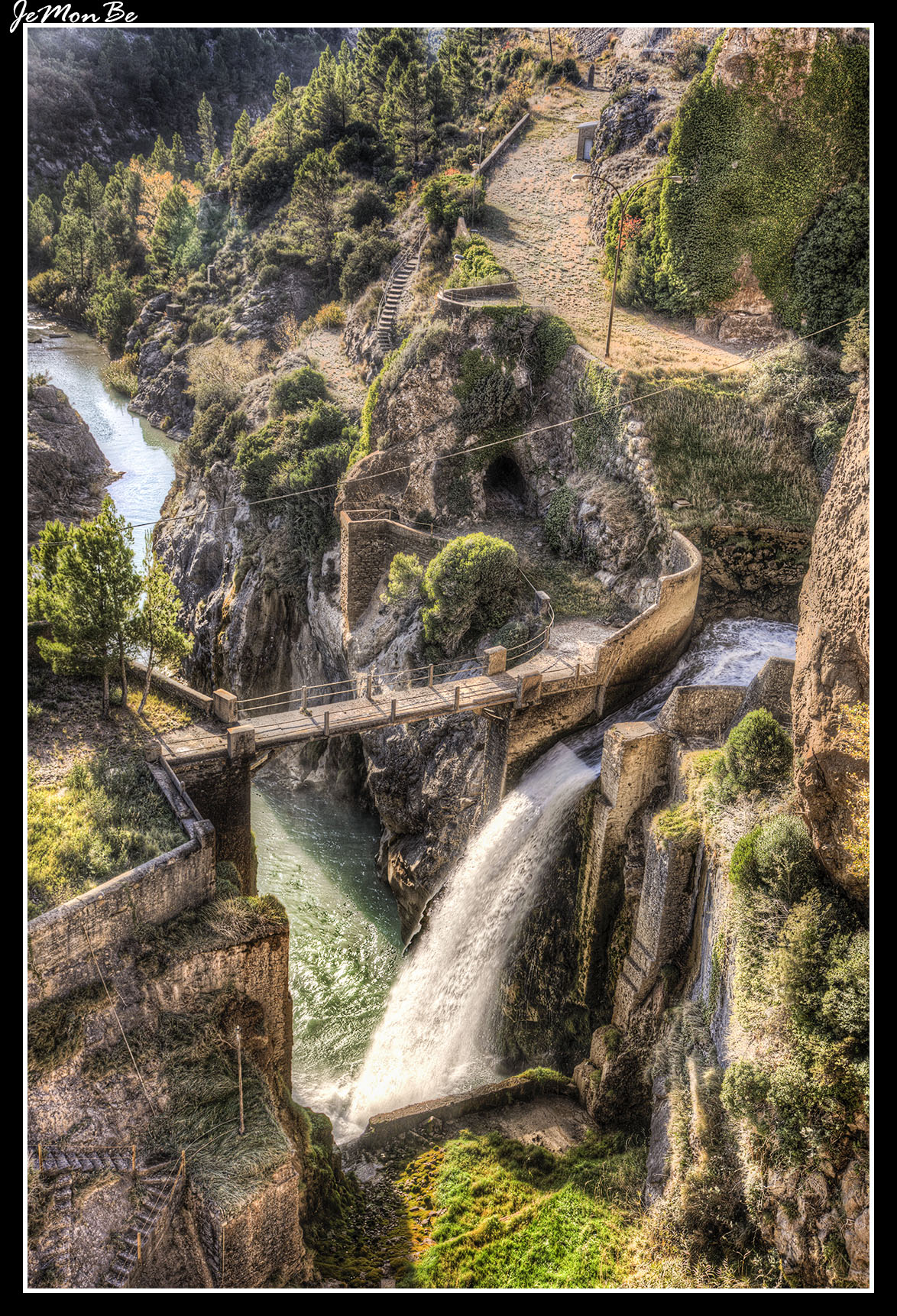Llama la atención el puente que salva el vaso del embalse, para permitir el tráfico rodado, construido por Severino Bello siguiendo la arquitectura ferroviaria de la época y que tan sólo unos kilómetros más adelante, en La Peña Estación, se repite pero en esta ocasión para permitir al ferrocarril, el mítico ‘Canfranero’ salvar el cauce hacia (o desde) Riglos.