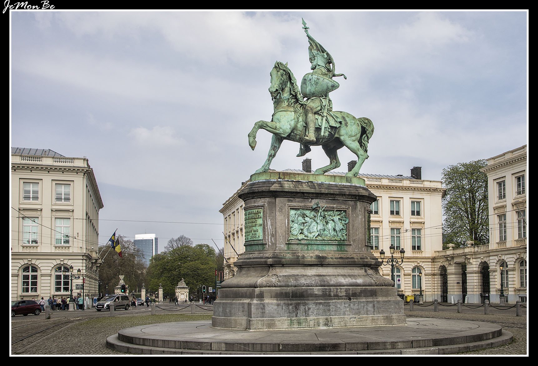 En el centro de plaza Real se sitúa la estatua ecuestre de Godofredo de Bouillón,soldado de Brabante que luchó en las primeras cruzadas católicas y murió en Palestina. Si nos situamos precisamente a los pies de esta estatua disfrutaremos mejor de las vistas de la plaza. A un lado el Palacio de Justicia, hacia el otro la Iglesia de Santiago, al frente el Parque Monte de las Artes y por la rue Royale se puede ver al fondo el Parque de Bruselas.
