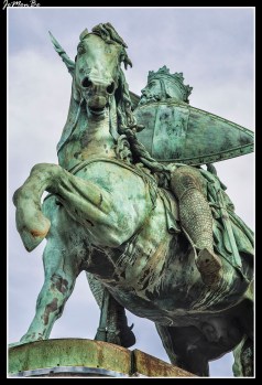 En el centro de plaza Real se sitúa la estatua ecuestre de Godofredo de Bouillón,soldado de Brabante que luchó en las primeras cruzadas católicas y murió en Palestina. Si nos situamos precisamente a los pies de esta estatua disfrutaremos mejor de las vistas de la plaza. A un lado el Palacio de Justicia, hacia el otro la Iglesia de Santiago, al frente el Parque Monte de las Artes y por la rue Royale se puede ver al fondo el Parque de Bruselas.