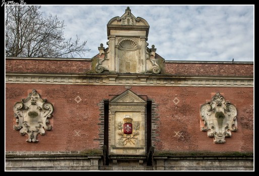 La parte central está formada por una pared de ladrillo decorada con emblemas rúnicos con un ornamento tallado con el escudo de armas de Lille coronado por un frontón triangular y en ambos lados la ubicación de los brazos del puente levadizo. Encima de cada pasaje lateral hay un cartucho de piedra blanca decorado con varios motivos.
