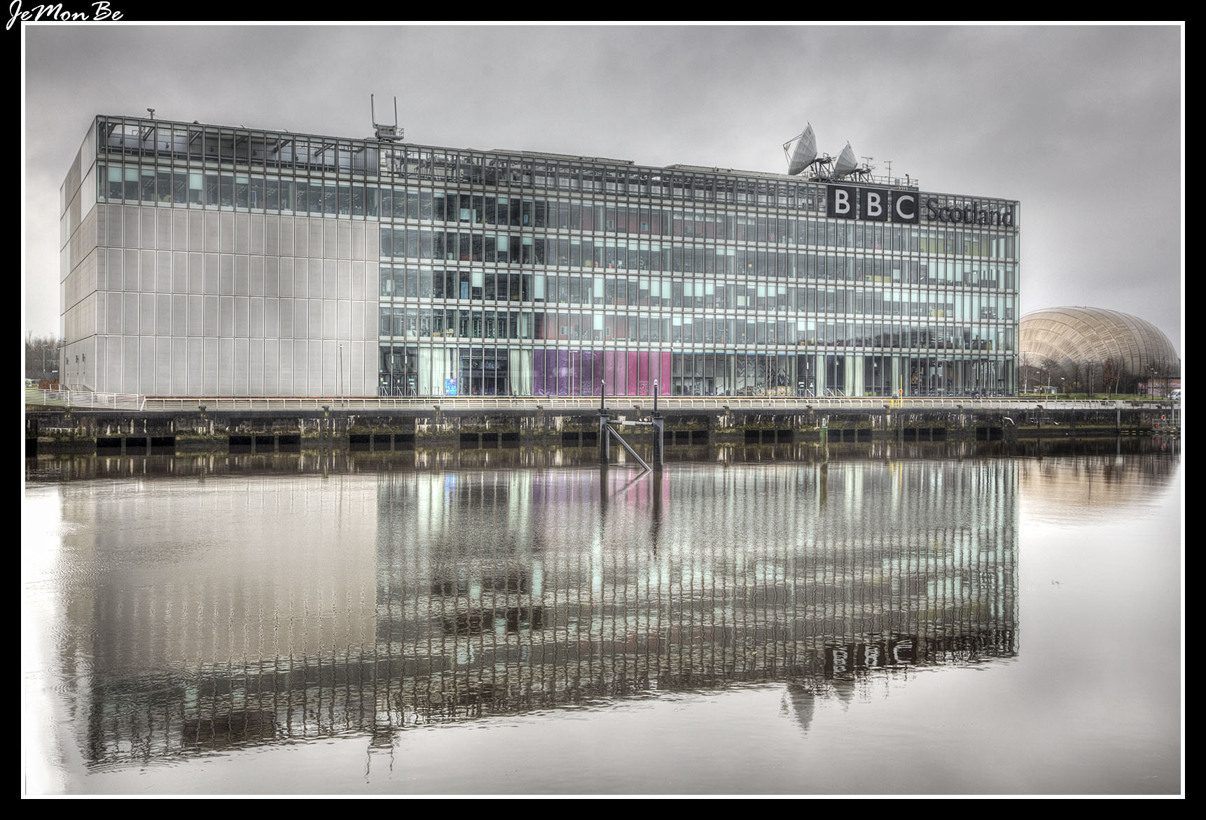 Imagen anterior Imagen siguiente 166 Glasgow BBC Pacific Quay es el complejo de estudio de radio y televisión de la BBC Escocia en Glasgow. Los estudios se encuentran adyacentes al centro de Ciencias de Glasgow.