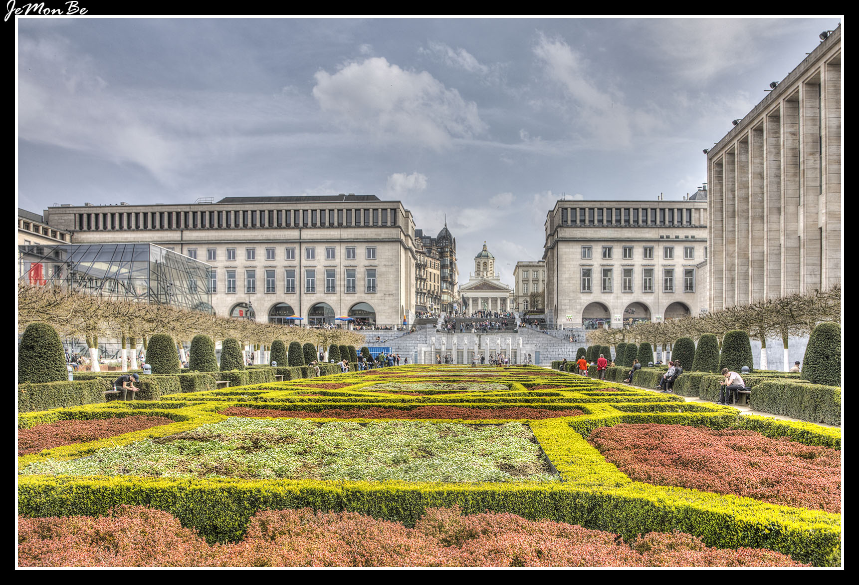 Estos grandilocuentes jardines se diseñaron entre los años 1954 y 1965. El espacio ajardinado está dominado por dos estatuas que representan a los reyes Alberto I, montado a caballo, y en el otro extremo, su pareja la reina Isabel, ambas esculturas mirando en la distancia entre sí y realizadas en 1951 por Courtens. Dentro del conjunto monumental que rodea los jardines de Mont des Arts también destaca el volumen de la gran biblioteca de la Albertina. La práctica mayoría de edificios que rodean esta zona verde son de una poderosa monumentalidad.