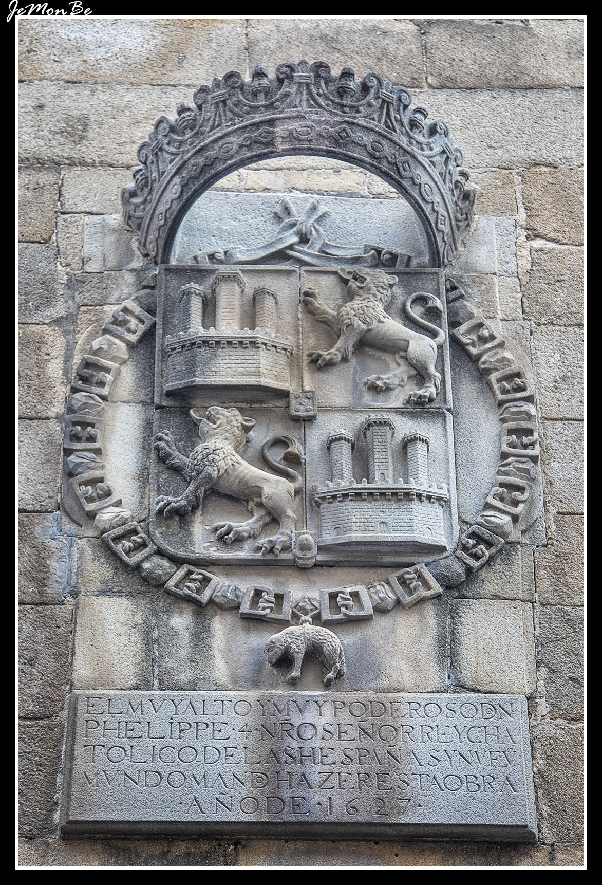 Blasón de Felipe IV en la antigua cárcel de Plasencia, en calle del Rey, en un lateral de la Plaza Mayor, construida en el siglo XVII con fachada de sillería,