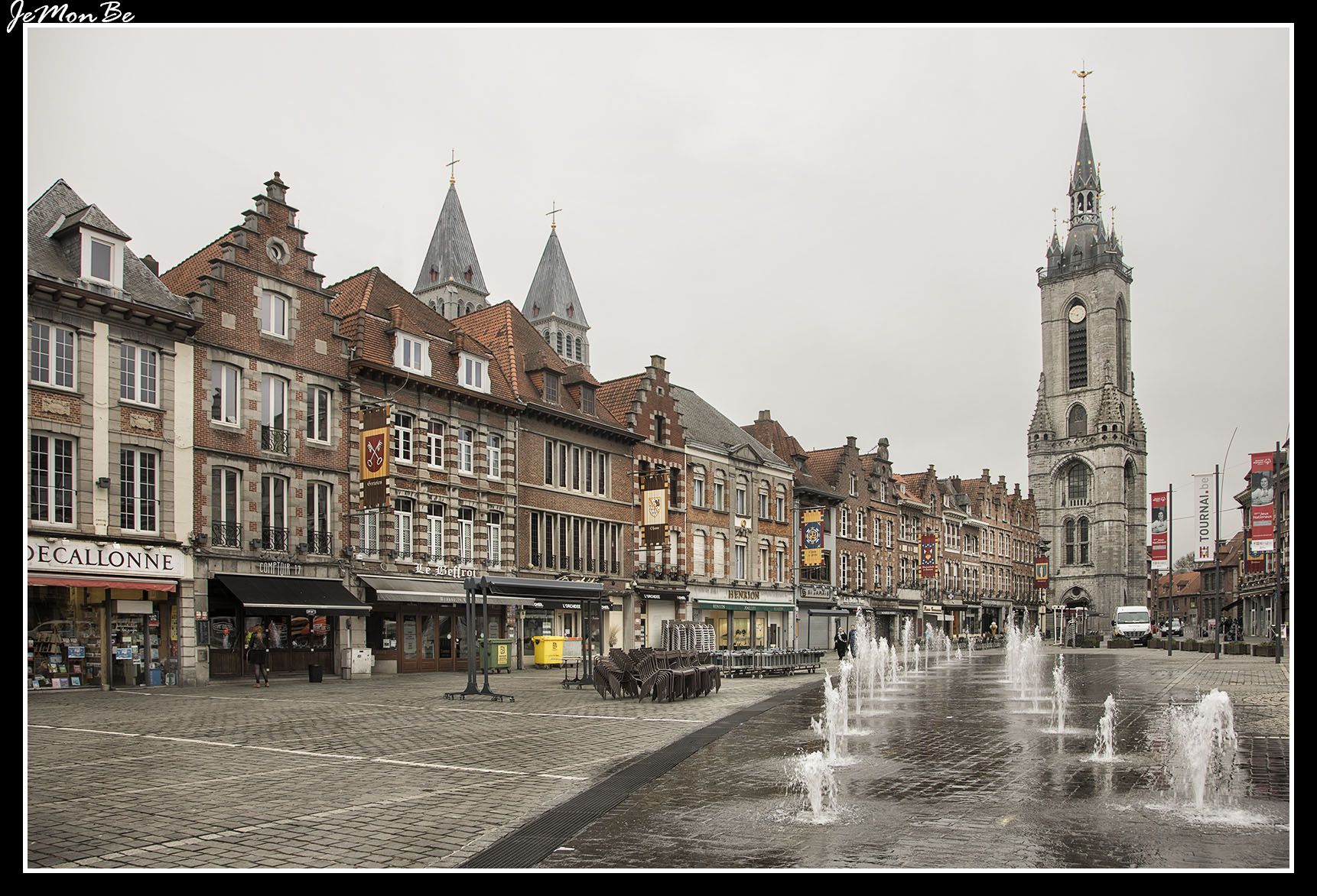 La Gran Plaza, de forma triangular, está formada por palacios del siglo XVII y dominada por el Beffroi. Rodeando la plaza hacia el sur, se ubica la elegante fachada renacentista de la Halle aux Draps (mercado de telas), levantado entre 1610 y 1611. En la parte oeste de la plaza está la románica iglesia de Saint Quintín del siglo XIII.