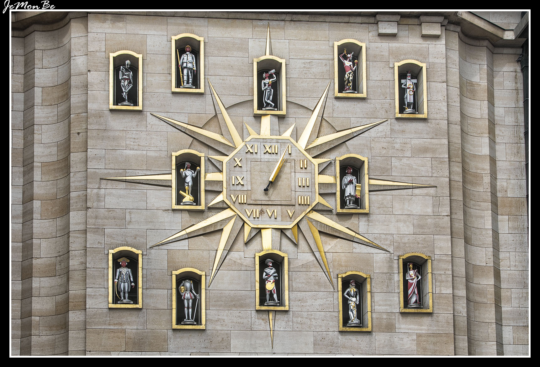 Este precioso carrillón está situado en la fachada del Archivo General del Estado, en el Mont des Arts. Se trata de un reloj totalmente automático instalado aquí durante la construcción del Palacio de Congresos, con motivo de la Exposición Universal de Bruselas 1958. El carrillón consta de 24 campanas y varias estatuillas en hornacinas que forman parte de una colección de figuras históricas de Bruselas. En la parte superior hay una figura articulada que, con su martillo toca la campana, a cada hora en punto.