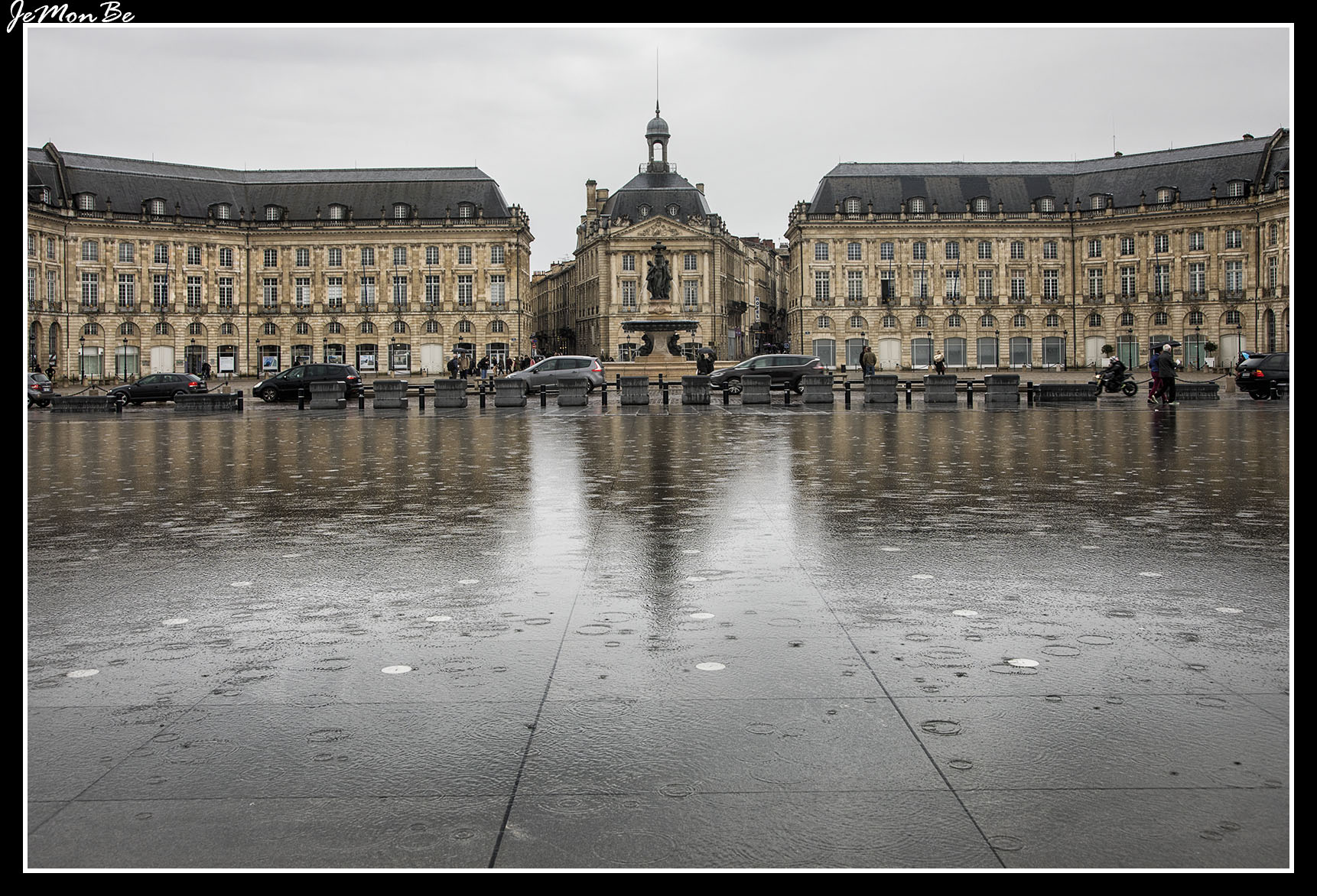 Frente a la plaza por el lado del río, el espejo de agua con su losa de granito imaginado por Michel Courajoud refleja las elegantes fachadas del s. XVIII gracias a un original sistema de fuentes que alternan el efecto espejo (con 2 cm de agua) con el efecto bruma.
