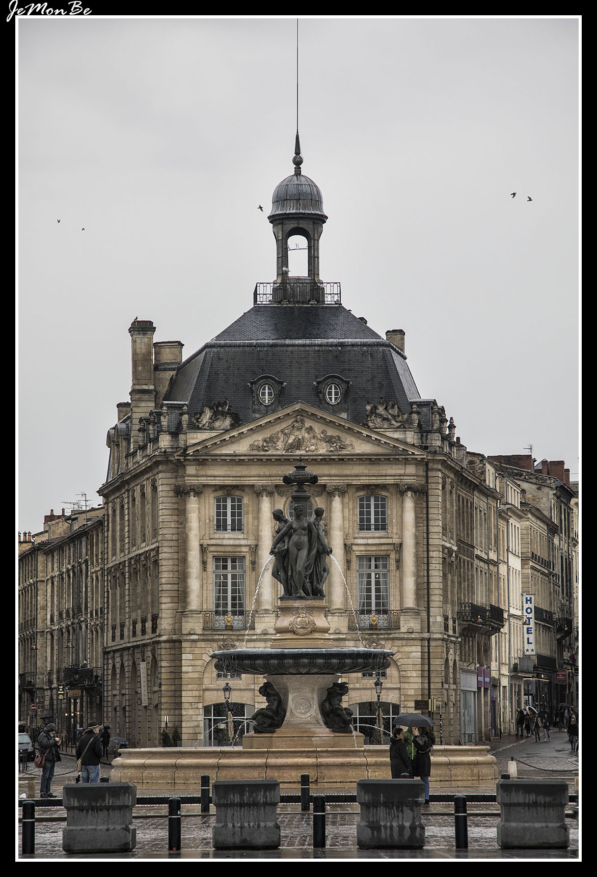 Frente a la plaza por el lado del río, el espejo de agua con su losa de granito imaginado por Michel Courajoud refleja las elegantes fachadas del s. XVIII gracias a un original sistema de fuentes que alternan el efecto espejo (con 2 cm de agua) con el efecto bruma.