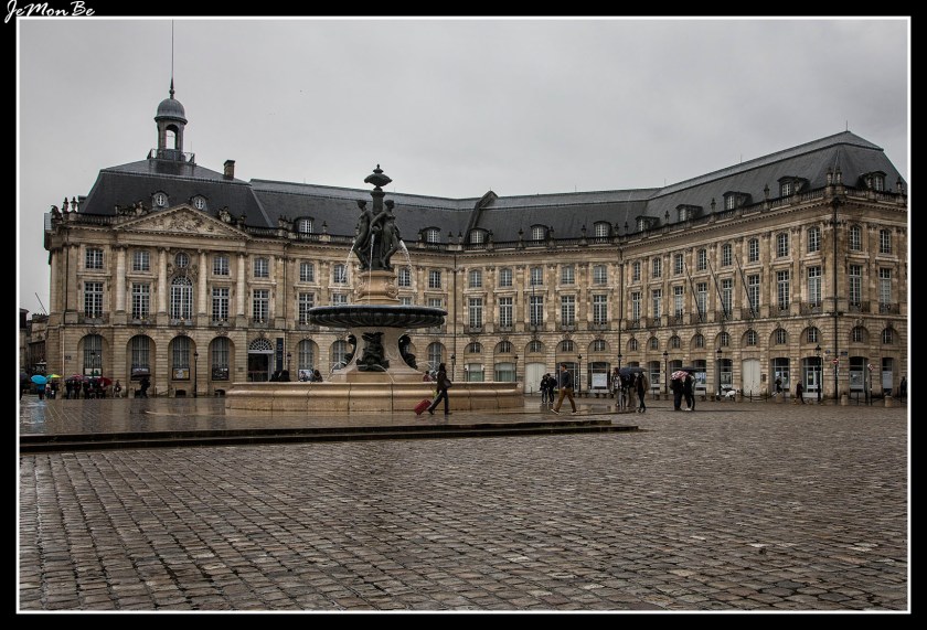 Frente a la plaza por el lado del río, el espejo de agua con su losa de granito imaginado por Michel Courajoud refleja las elegantes fachadas del s. XVIII gracias a un original sistema de fuentes que alternan el efecto espejo (con 2 cm de agua) con el efecto bruma.