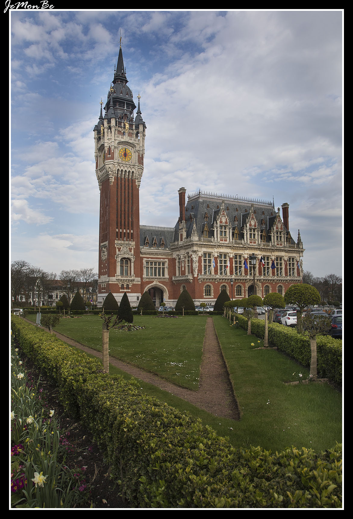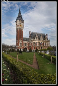 El ayuntamiento de Calais es un edificio de estilo flamenco neorrenacentista con algunos elementos de estilo neotudor, diseñado por uno de los pioneros en el uso del hormigón armado: Louis Debrouwer, originario de la cercana Dunkerque. Construido en ladrillo rojo y piedra blanca, su fachada principal mira hacia el oeste, al Parque del Soldado Desconocido, donde nos encontramos con los burgueses de Calais una de las más famosas esculturas de Auguste Rodin. Este conjunto escultórico representa a los seis burgueses que en 1347, al inicio de la Guerra de los Cien Años (1337-1453), se ofrecieron a dar sus vidas para salvar a los habitantes de la sitiada ciudad francesa de Calais. Calais encargó a Rodin crear la escultura en 1884, y la obra fue terminada en 1889.