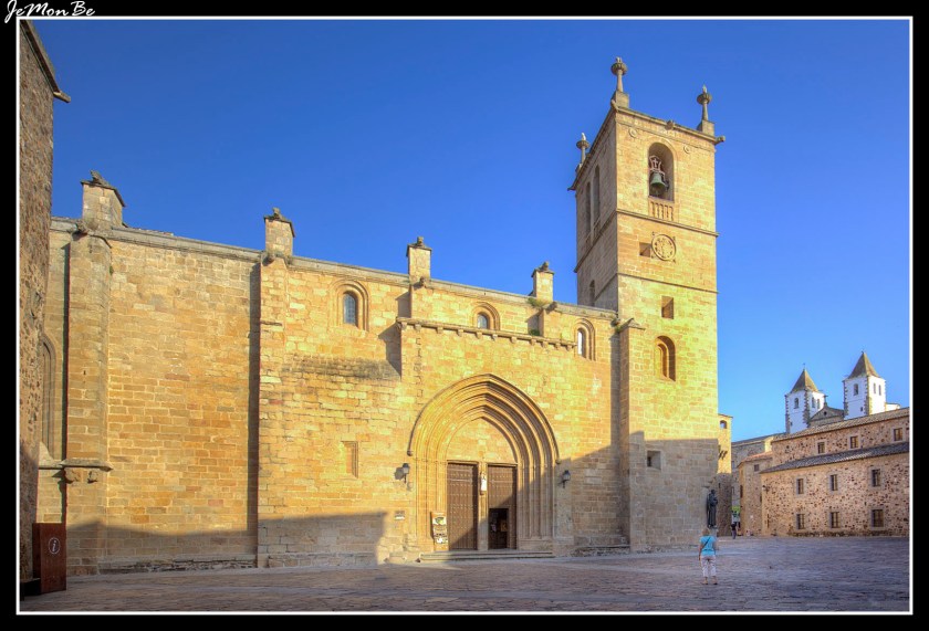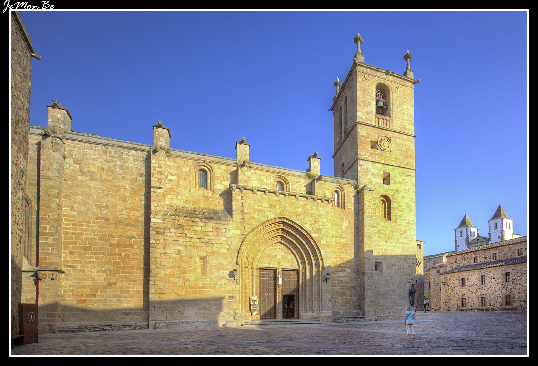 Le fue otorgada la categoría de concatedral en 1957, compartiendo sede episcopal con la catedral de Coria. Fue construida entre los siglos XV al XVI sobre una obra anterior. Las portadas siguen modelos góticos y en la del Evangelio destaca un pilar con ménsula sosteniendo la Virgen. La torre es de tres cuerpos, el central tiene un medallón con jarrón de azucenas, símbolo de la Virgen. El interior es de planta rectangular de tres naves, con arcos apuntados y bóvedas de crucería. Destaca su retablo, del siglo XVI, de cedro y pino sin policromar dedicado a la Asunción de la Virgen, realizado por Roque Balduque y Guillén Ferrant. También hay que destacar la capilla de los Carvajal, con un retablo barroco con San Miguel Arcángel, y la capilla del Cristo Negro, cuya imagen es la protagonista de una de las procesiones más importantes de la Semana Santa Cacereña.