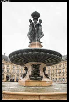 Frente a la plaza por el lado del río, el espejo de agua con su losa de granito imaginado por Michel Courajoud refleja las elegantes fachadas del s. XVIII gracias a un original sistema de fuentes que alternan el efecto espejo (con 2 cm de agua) con el efecto bruma.