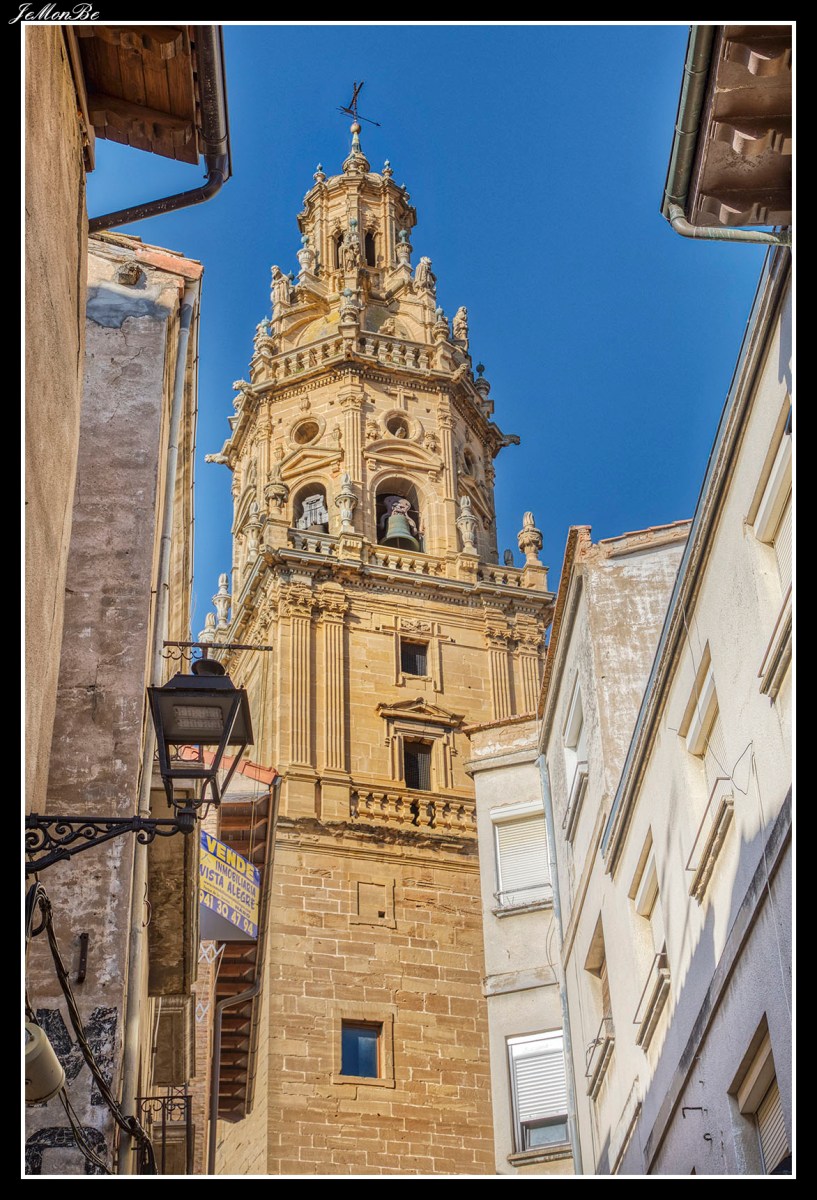 En el exterior es de destacar la portada principal bajo arco con escenas del Calvario e imaginería de los Apóstoles y el Padre Eterno junto a los escudos de los Velasco. Es una obra de estilo plateresco la decoración con candelieri, grutescos y guirnaldas realizada en piedra, introduce en La Rioja un nuevo estilo de corte renacentista italiano y supone la transición de la iglesia antigua a la iglesia actual estructuralmente a la manera de arco de triunfo.