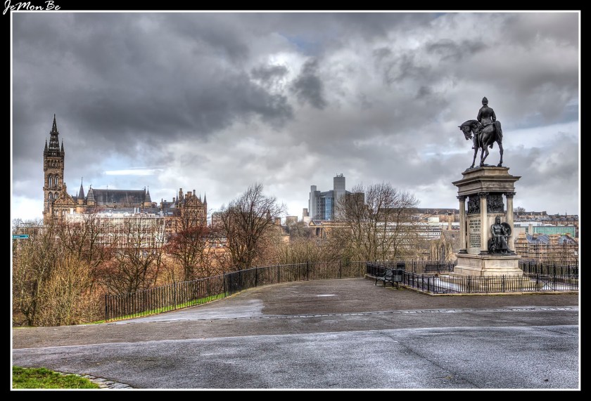 Esta estatua se encuentra en una posición prominente en el parque Kelvingrove mirando a la Universidad de Glasgow. Es de bronce y muestra a lord Roberts montado a caballo y debajo de él hay tallas de soldados. El hombre de aspecto muy feroz en la parte trasera del monumento es la guerra, la figura femenina en la parte delantera es la victoria con el lema “virtute et valore” (virtud y coraje).
