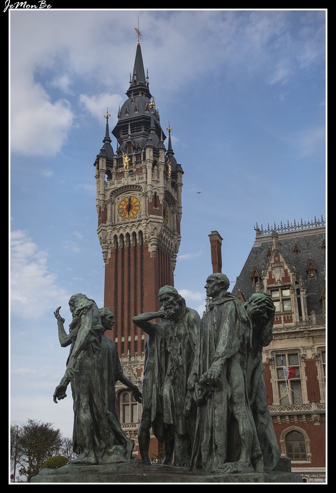 El ayuntamiento de Calais es un edificio de estilo flamenco neorrenacentista con algunos elementos de estilo neotudor, diseñado por uno de los pioneros en el uso del hormigón armado: Louis Debrouwer, originario de la cercana Dunkerque. Construido en ladrillo rojo y piedra blanca, su fachada principal mira hacia el oeste, al Parque del Soldado Desconocido, donde nos encontramos con los burgueses de Calais una de las más famosas esculturas de Auguste Rodin. Este conjunto escultórico representa a los seis burgueses que en 1347, al inicio de la Guerra de los Cien Años (1337-1453), se ofrecieron a dar sus vidas para salvar a los habitantes de la sitiada ciudad francesa de Calais. Calais encargó a Rodin crear la escultura en 1884, y la obra fue terminada en 1889.