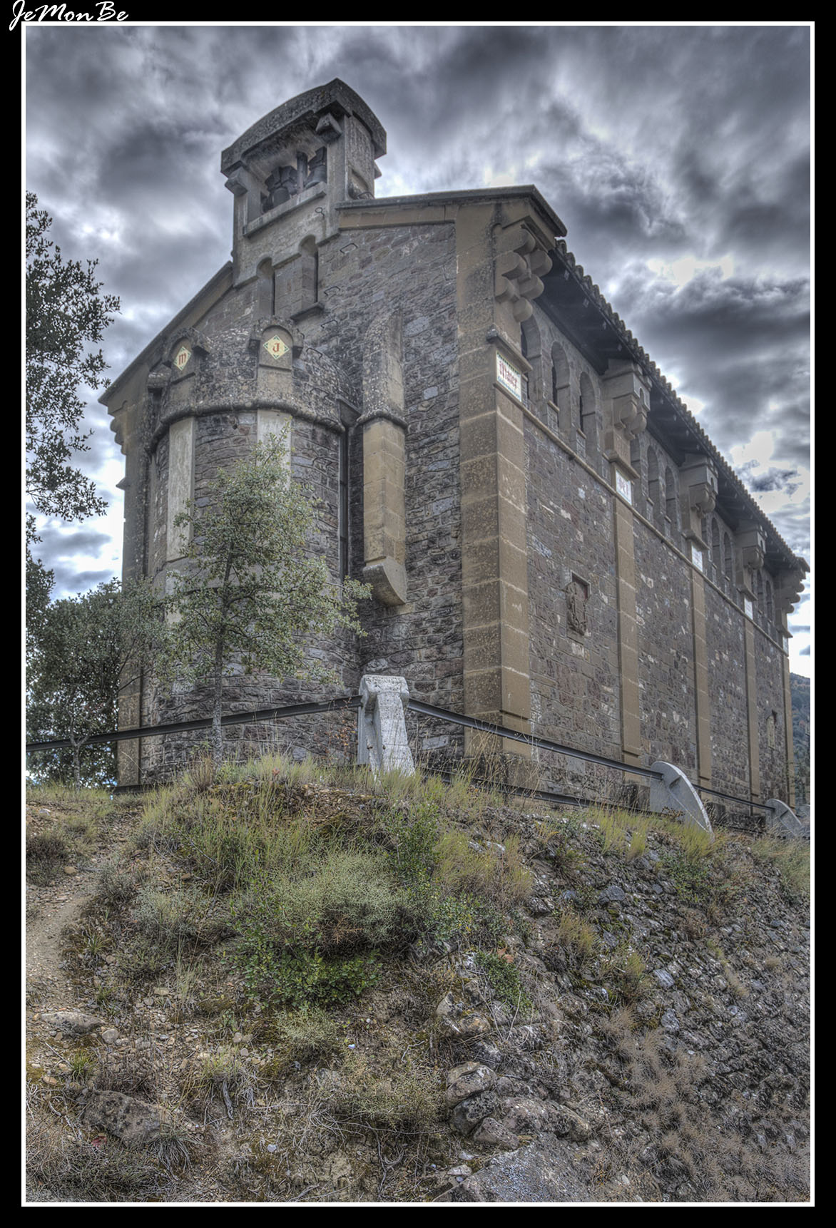 Es una construcción de planta rectangular, con una cabecera semicircular más estrecha y baja orientada al norte. Está realizada en mampostería, con algunos elementos decorativos en piedra sillar y cubierta con teja a dos aguas.
