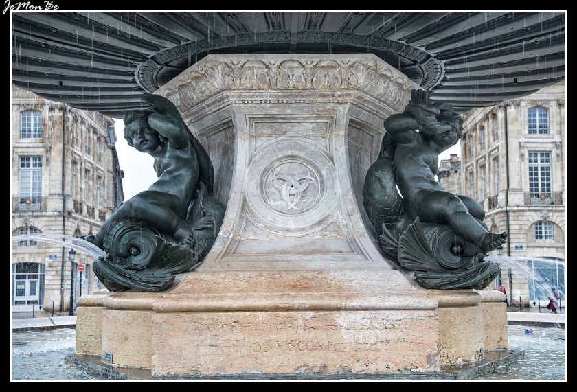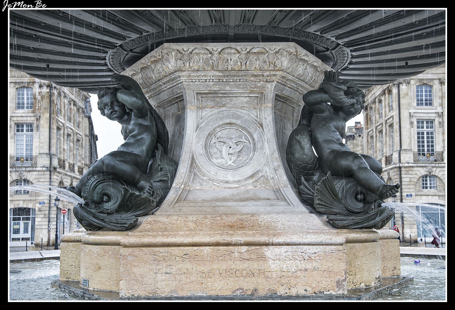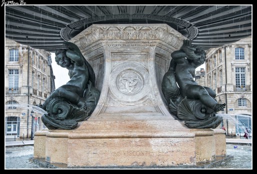 Frente a la plaza por el lado del río, el espejo de agua con su losa de granito imaginado por Michel Courajoud refleja las elegantes fachadas del s. XVIII gracias a un original sistema de fuentes que alternan el efecto espejo (con 2 cm de agua) con el efecto bruma.
