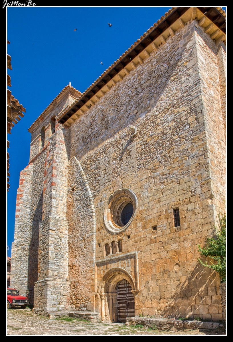 Fue restaurada en estilo gótico, conserva de su etapa románica la portada. Ésta tiene tres arquivoltas ligeramente apuntadas, que se apoyan sobre capiteles decorados con motivos animales. La puerta esta enmarcada por un alfiz. Encima de la portada hay tres vanos cegados, el arco del central es lobulado y sobre ellos un óculo.