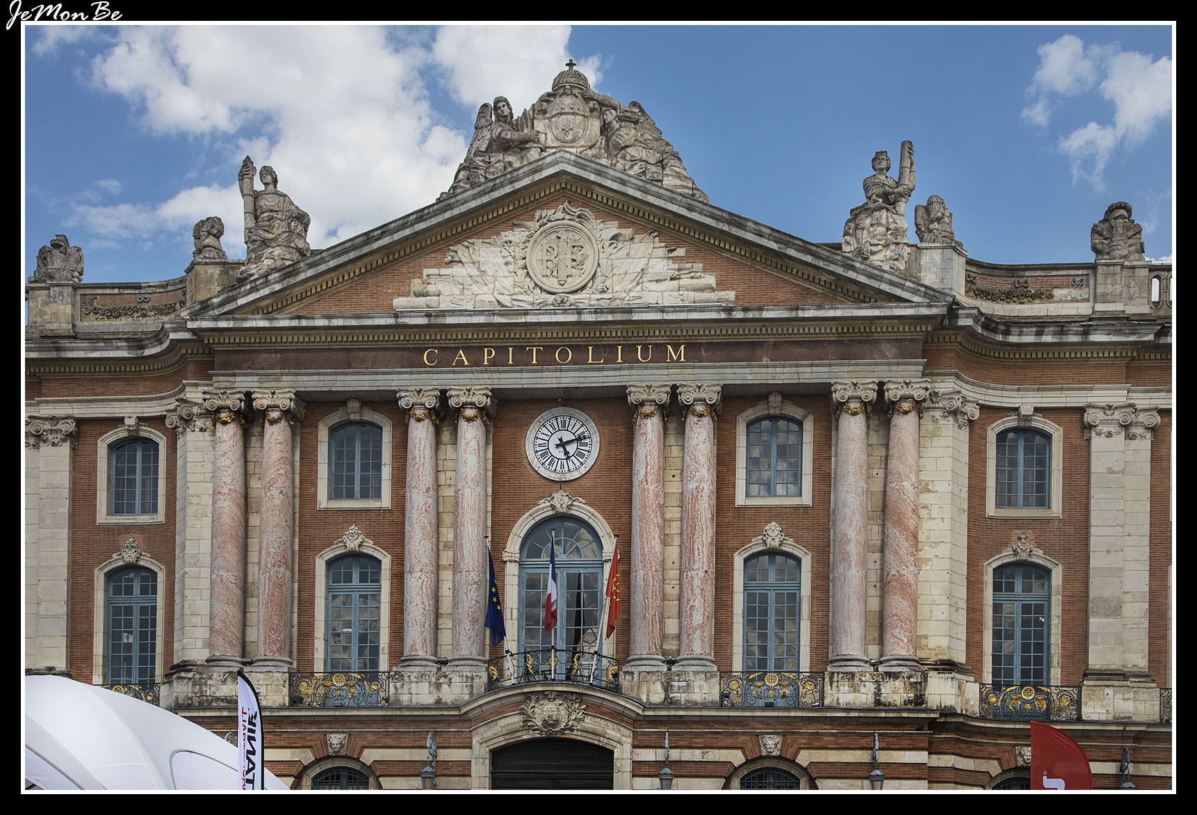 La Plaza del Capitolio de la “ciudad rosa” adquiere su nombre del edificio que allí se encuentra el Capitolio, el actual ayuntamiento de la ciudad. Sus orígenes se remontan al año 1190 cuando se pensó que debía construirse una sede para los mandatarios del momento. Su nombre es un homenaje a los Capitouls, los miembros del consejo municipal. En su fachada podremos observar ocho columnas, que representan a los ocho primeros cónsules que dirigían los ocho distritos de la ciudad. La fachada es una modificación del año 1750.