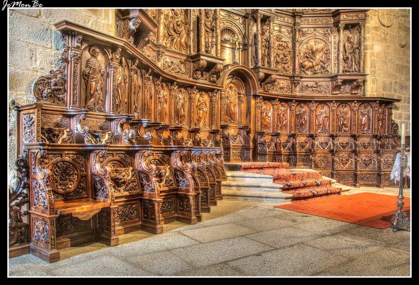 Le fue otorgada la categoría de concatedral en 1957, compartiendo sede episcopal con la catedral de Coria. Fue construida entre los siglos XV al XVI sobre una obra anterior. Las portadas siguen modelos góticos y en la del Evangelio destaca un pilar con ménsula sosteniendo la Virgen. La torre es de tres cuerpos, el central tiene un medallón con jarrón de azucenas, símbolo de la Virgen. El interior es de planta rectangular de tres naves, con arcos apuntados y bóvedas de crucería. Destaca su retablo, del siglo XVI, de cedro y pino sin policromar dedicado a la Asunción de la Virgen, realizado por Roque Balduque y Guillén Ferrant. También hay que destacar la capilla de los Carvajal, con un retablo barroco con San Miguel Arcángel, y la capilla del Cristo Negro, cuya imagen es la protagonista de una de las procesiones más importantes de la Semana Santa Cacereña.