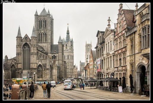 La iglesia de San Nicolás es uno de los monumentos más antiguos de Gante. Su construcción se inició a principios del siglo XIII, de estilo gótico tournaisino propio de la zona del Escalda. Las características de este estilo local es el uso de la piedra azul-gris de la zona de Tournai, la existencia de un campanario o linterna sobre el crucero, y unas pequeñas torres de cubierta cónica en las esquinas del edificio.