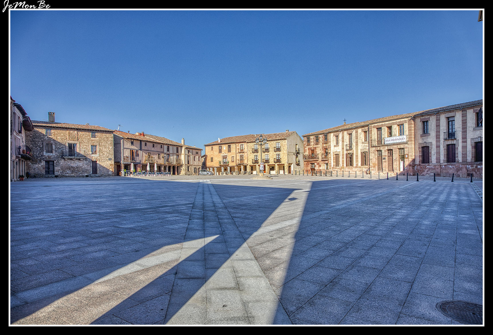 Típica plaza castellana cerrada, porticada y de forma casi pentagonal, aparece escoltada por edificios notables.