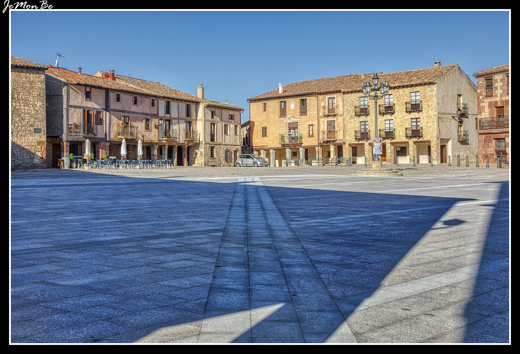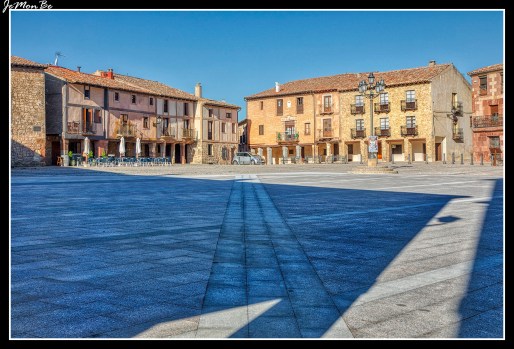 Típica plaza castellana cerrada, porticada y de forma casi pentagonal, aparece escoltada por edificios notables.