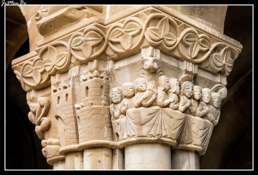 Su claustro rectangular está formado por arcos de medio punto y columnas dobles con 38 elaborados capiteles que representan la vida de Jesús, así como otras escenas de carácter alegórico e histórico. Este claustro tiene en su lado este varias capillas