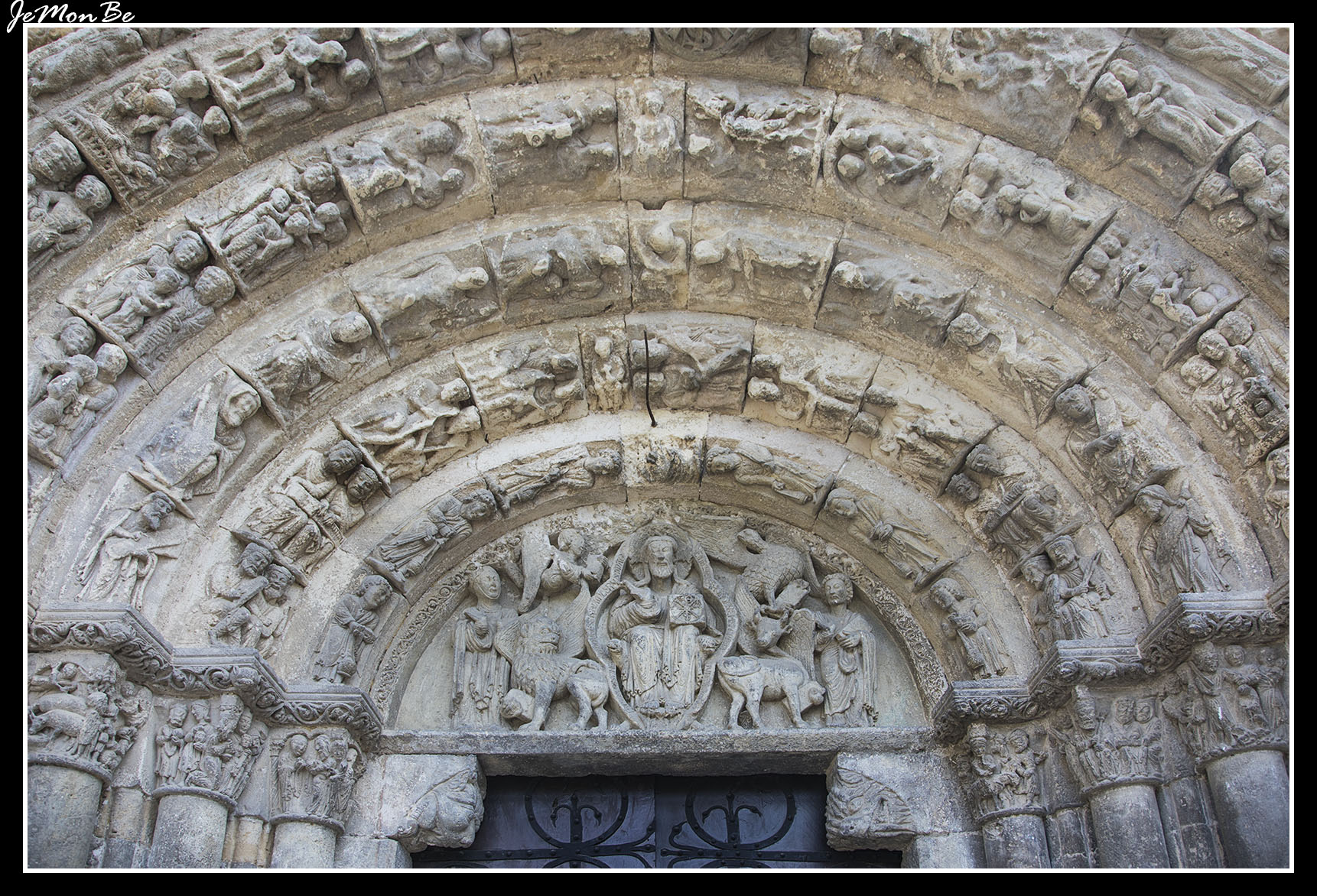 Al interior se accede a través de dos puertas, situadas en los lados de la Epístola y del Evangelio. La meridional, del siglo XIII, es muy sencilla, con arquivoltas apoyadas en capiteles decorados con vegetales estilizados y algunas cabecitas. La septentrional reviste mayor interés tanto desde el punto de vista técnico como iconográfico.