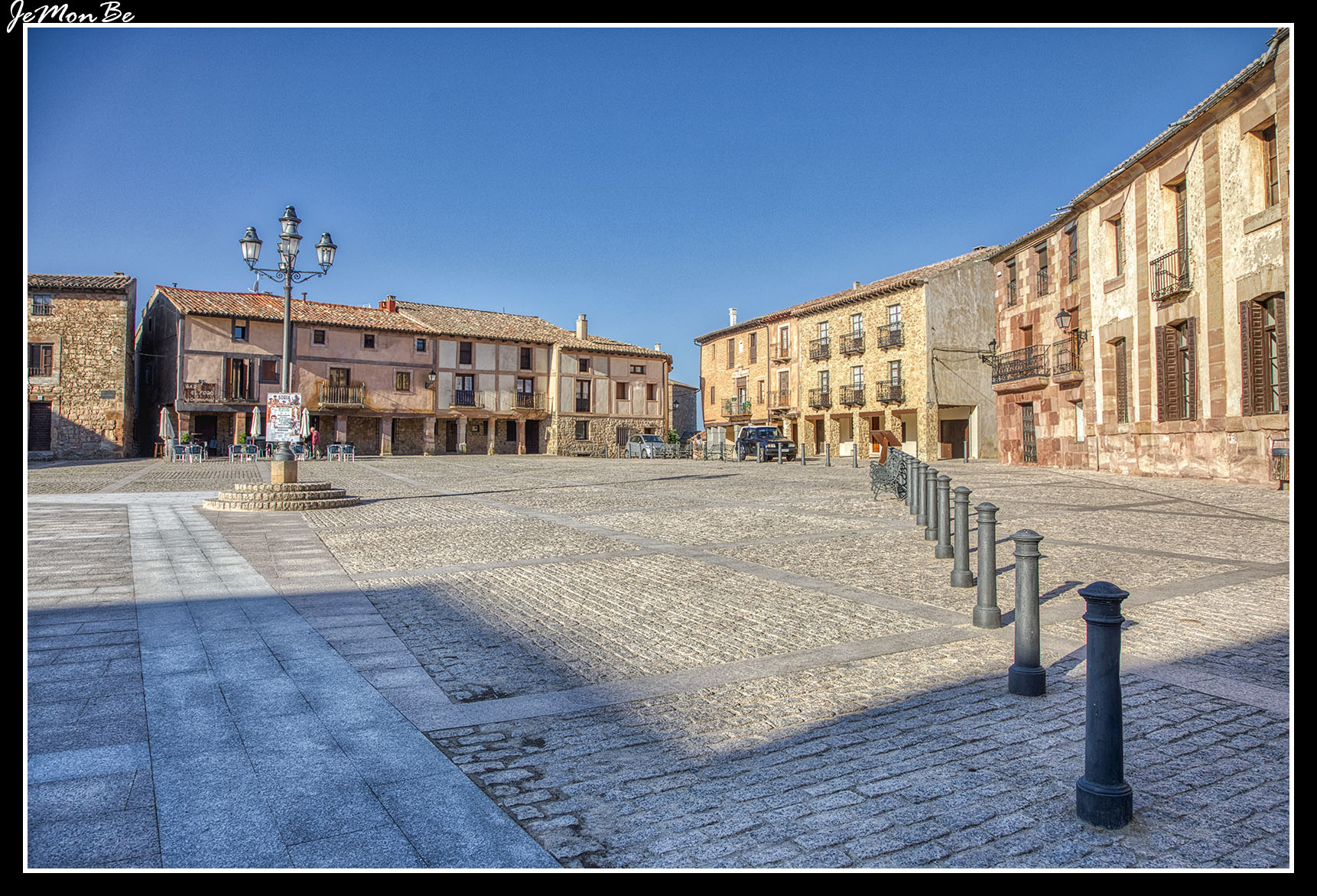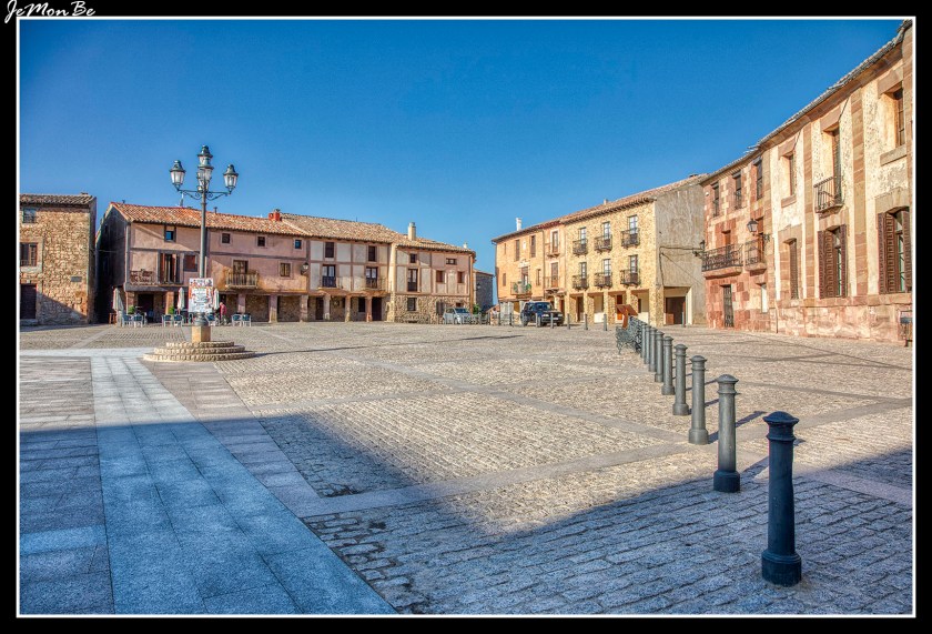 Típica plaza castellana cerrada, porticada y de forma casi pentagonal, aparece escoltada por edificios notables.