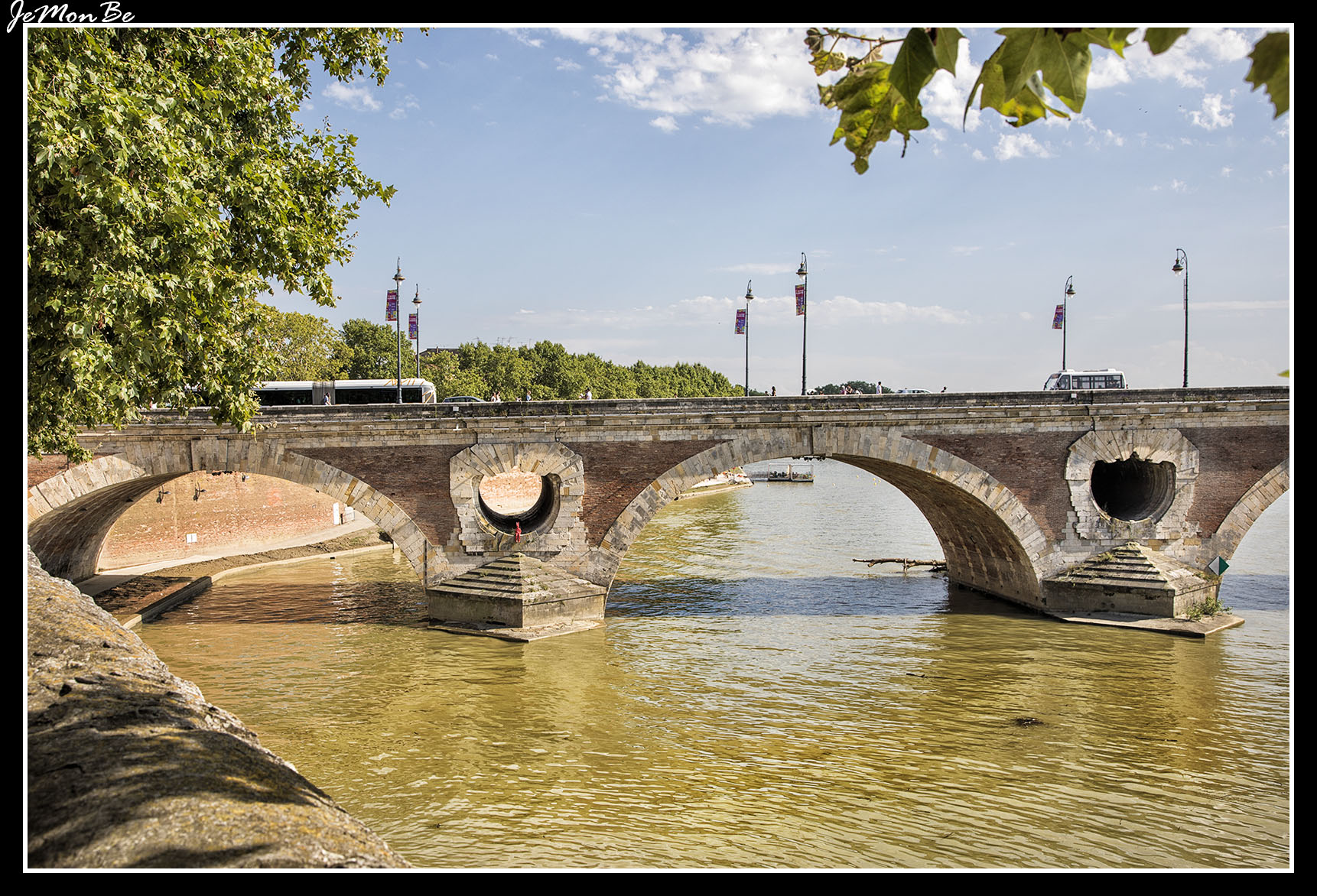 El Garona llega a Toulouse desde el sur, con un amplio cauce de entre 100-200 m. Deja en su curso dos amplias islas que han sido urbanizadas. Son muchos los puentes que conectan esas islas y ambas márgenes de la ciudad. El puente más antiguo de la ciudad es el puente Neuf, con una longitud de 220 m, su característica más llamativa son sus pilas, con forma de pico en la base y aperturas entre los arcos, diseñados para soportar las fuertes crecidas del Garona que ya se habían cobrado otros puentes con anterioridad.