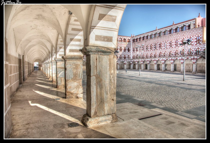 La plaza Alta de Badajoz data del siglo XV al XVII. Se cree que está construida sobre las antiguas casas de una ciudad islámica. Durante la Edad Media el espacio abierto sin construcciones situado junto a la puerta del Capitel fue lugar de zoco y mercado. En su entorno se situaba la judería de la ciudad. En 1699 el Obispo Marín de Rodezno financió la reforma promovida por el concejo, con la construcción en el lado sur de tres edificios portados, decorados con esgrafiados de motivos geométricos.
