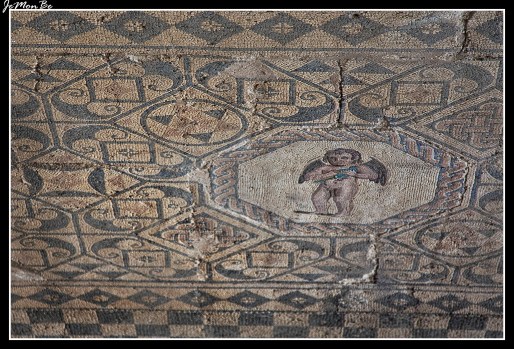Sus dependencias se distribuyen en torno a tres patios que articulan la vida de la casa y le proporcionan luz y ventilación. Está pavimentada con uno de los mosaicos más interesante aparecido en la ciudad: el Mosaico Cosmológico. En él se personifica la concepción del mundo y de las fuerzas de la naturaleza que lo gobiernan, junto con alguna actividad humana.