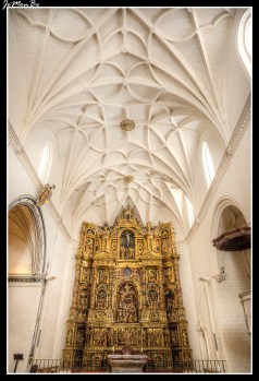 El templo presenta nave única que cubre con bóveda de crucería, con capillas laterales y coro alto a los pies sobre el que apoya el órgano. Desde una de estas capillas, la del Rosario, que se abre en el lado del Evangelio junto al órgano se accede a la de los Lecina o del Santo Cristo abre en monumental portada en estilo barroco labrada en estuco blanco sin policromar. Enmarcada por pilastras corintias con las cajas adornadas con motivos de candelieri barroco. Una reja de bronce con forma abalaustrada cierra el vano de acceso en arco de medio punto.