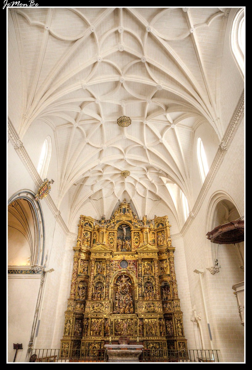 El templo presenta nave única que cubre con bóveda de crucería, con capillas laterales y coro alto a los pies sobre el que apoya el órgano. Desde una de estas capillas, la del Rosario, que se abre en el lado del Evangelio junto al órgano se accede a la de los Lecina o del Santo Cristo abre en monumental portada en estilo barroco labrada en estuco blanco sin policromar. Enmarcada por pilastras corintias con las cajas adornadas con motivos de candelieri barroco. Una reja de bronce con forma abalaustrada cierra el vano de acceso en arco de medio punto.