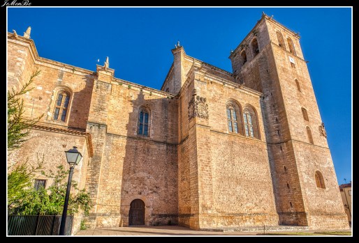 El acceso viene precedido por una escalinata con ocho columnas de mármol de estilo renacentista traídas desde Napolés por el Sexto Conde de Miranda, Juan de Zuñiga y rey de Napolés así como los tres bustos de los tres emperadores romanos que se hayan en la fachada.