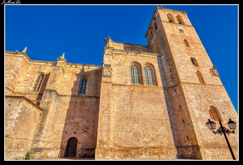 El acceso viene precedido por una escalinata con ocho columnas de mármol de estilo renacentista traídas desde Napolés por el Sexto Conde de Miranda, Juan de Zuñiga y rey de Napolés así como los tres bustos de los tres emperadores romanos que se hayan en la fachada.