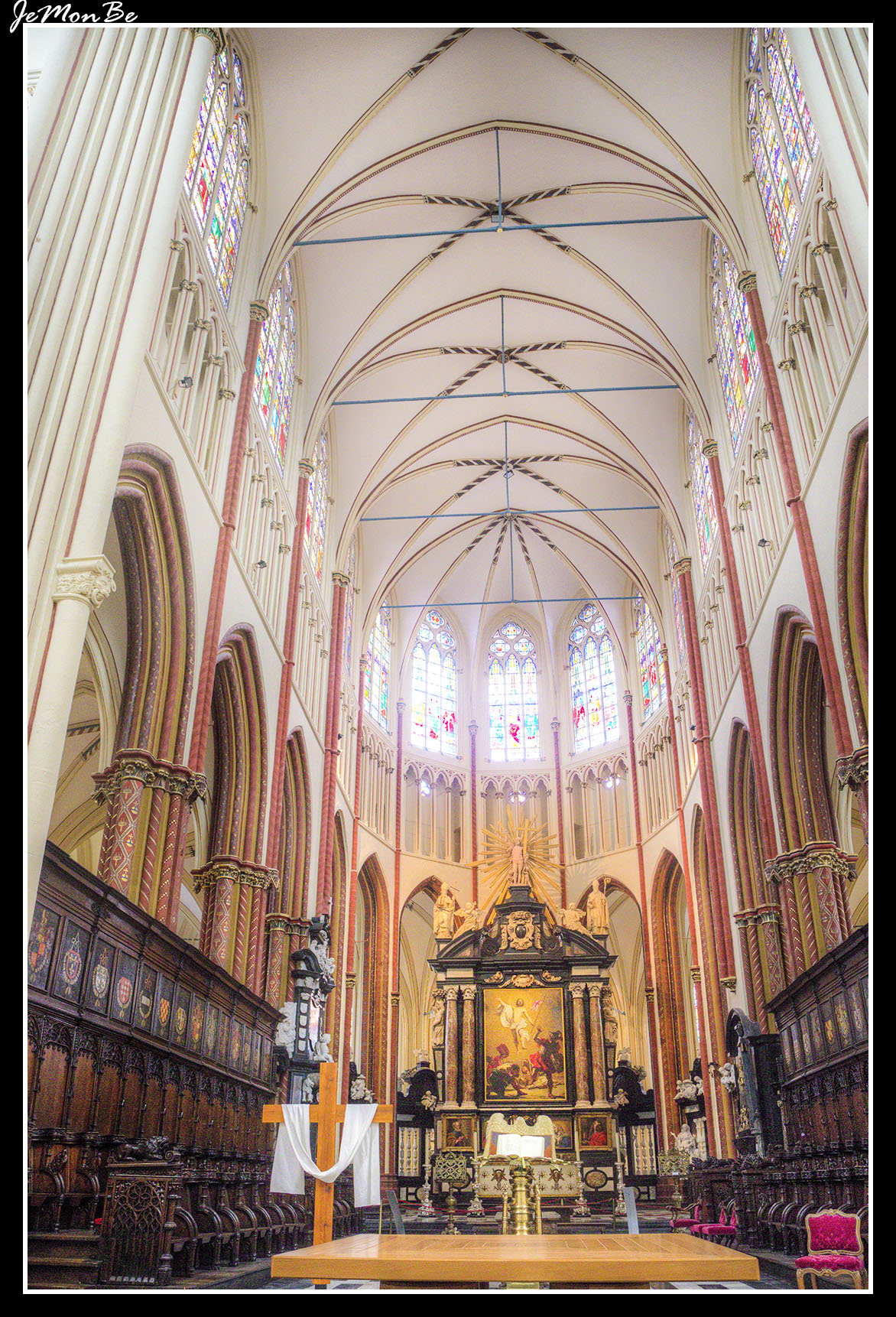 La Catedral pertenece al nuevo estilo gótico del Escalda. La torre iniciada en el siglo XII es una flecha que destaca en toda la ciudad, coronada por un campanario neorrománico de 99 metros de altura. La iglesia está formada por 3 naves de estilo gótico.
