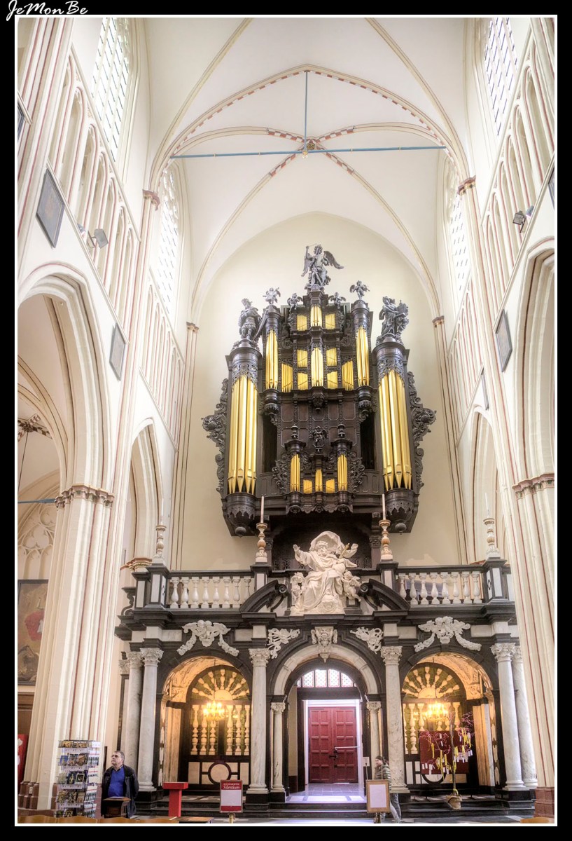 En el interior pueden verse tapices, pinturas y una reja barroca que separa el coro de la nave, coronada por una estatua realizada por Artus Quellin, el Joven, llamada “Dios Padre”.
