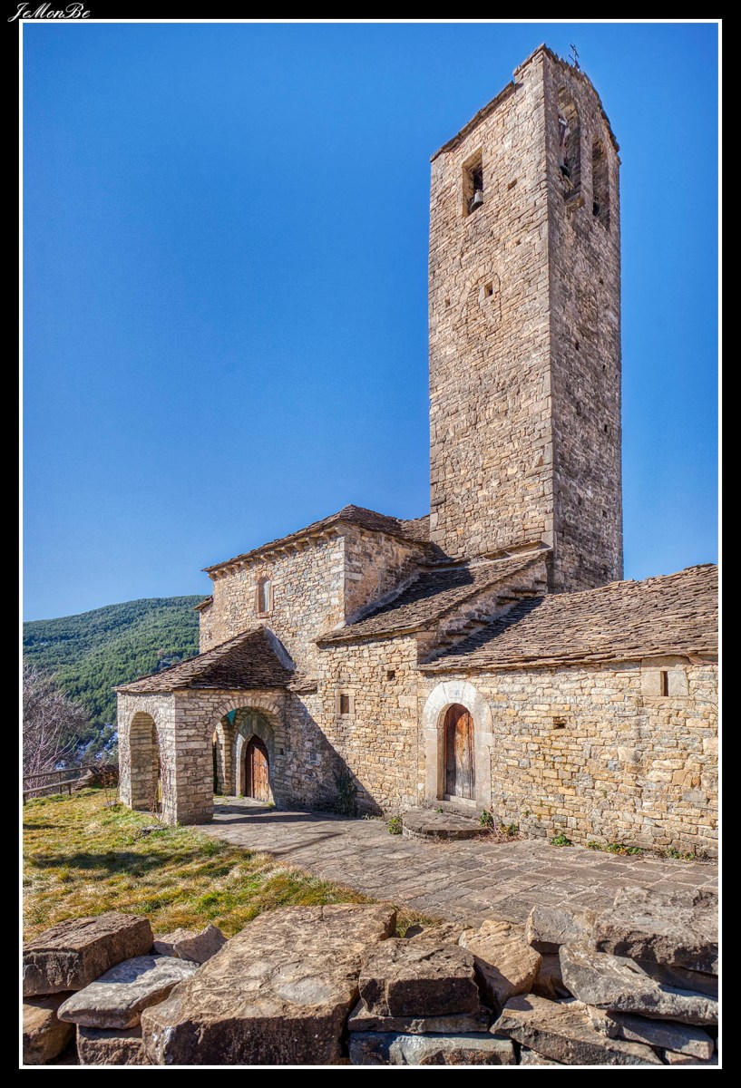 En origen fue románica; pero ha sufrido numerosas transformaciones que dificultan su comprensión. La nave, orientada canónicamente, aún guarda al exterior parte de su muro sur, conteniendo la portada original, cegada, de doble arquivolta, impostas lisas y jambas rectas.