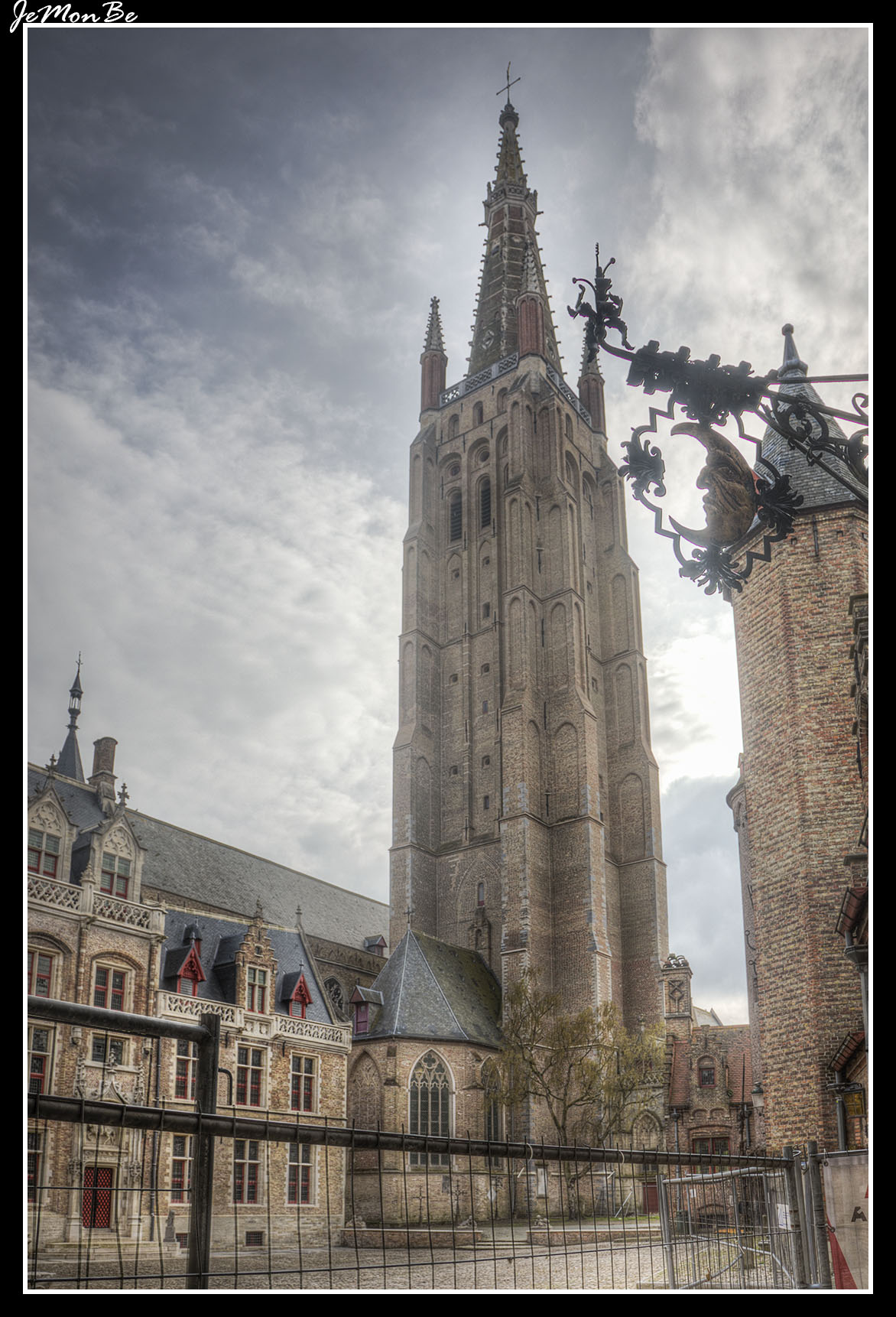 La iglesia de Nuestra Señora de Brujas, fue construida a lo largo de los siglos XIII, XIV y XV. La torre de la iglesia se construyó entre 1270 y 1340. Fue en el siglo XV cuando se le añadió la aguja superior. Desde entonces, con sus 122 metros de altura, es el edificio más alto de Brujas.