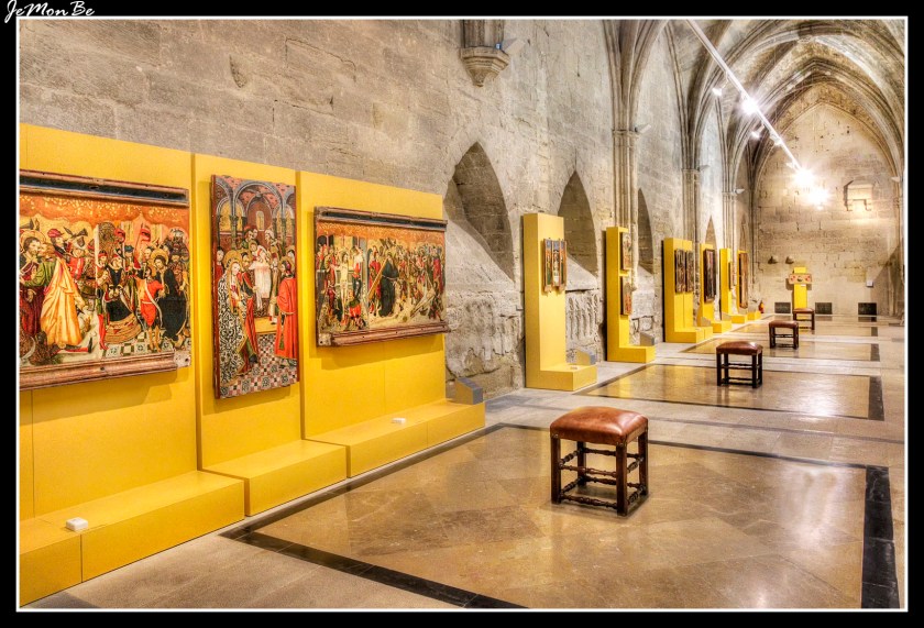 La portada principal está construida en estilo gótico y data de 1539. Está dividida en dos partes por un alero de madera muy volado al estilo aragonés del siglo XVI. La parte baja realizada por Guillem Inglés en 1327, con forma de gran arco apuntado de cuatro arquivoltas con decoración de figuras de mártires, vírgenes, ángeles y profetas.