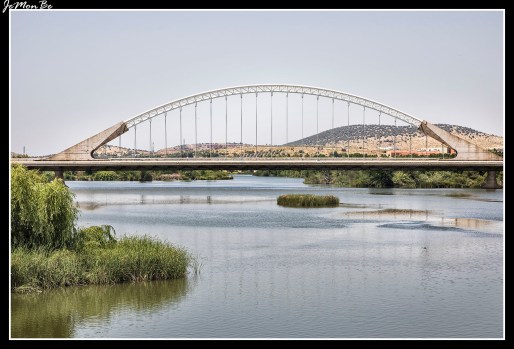 En 1991 se inauguró este puente diseñado por el arquitecto e ingeniero Santiago Calatrava. Unas plataformas de hormigón, con una vía peatonal central, se suspenden, con tensores de acero, de un gran arco. La inauguración de este puente, permitió liberar al puente romano sobre el Guadiana del tráfico rodado.