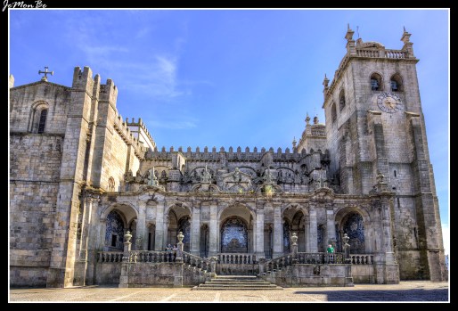 La catedral de Oporto está situada en el barrio de Batalha, junto a las murallas que tiempo atrás protegieron la ciudad. El exterior del edificio tiene un aspecto de fortaleza con almenas.