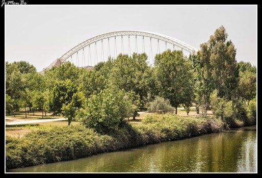 En 1991 se inauguró este puente diseñado por el arquitecto e ingeniero Santiago Calatrava. Unas plataformas de hormigón, con una vía peatonal central, se suspenden, con tensores de acero, de un gran arco. La inauguración de este puente, permitió liberar al puente romano sobre el Guadiana del tráfico rodado.