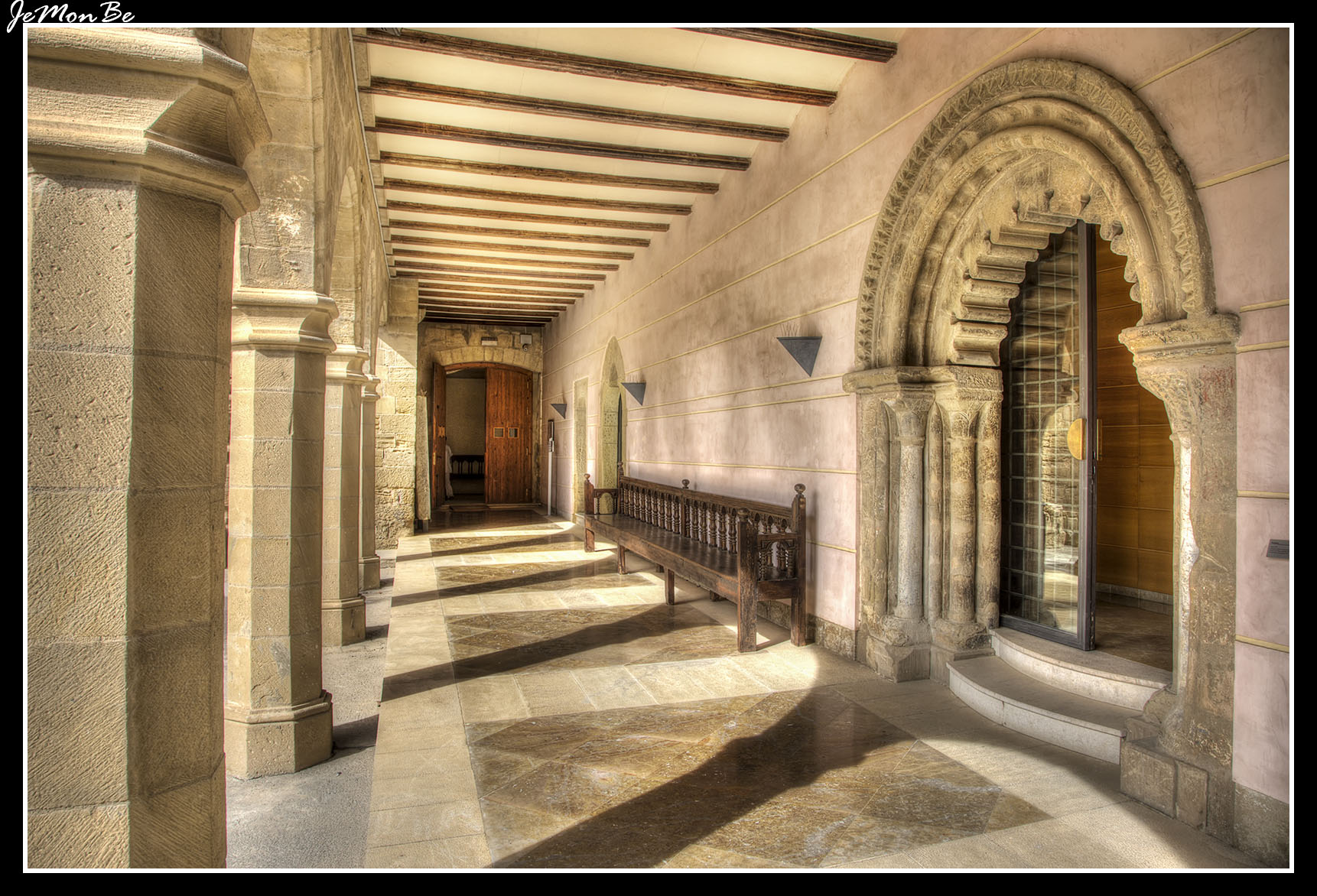 La portada principal está construida en estilo gótico y data de 1539. Está dividida en dos partes por un alero de madera muy volado al estilo aragonés del siglo XVI. La parte baja realizada por Guillem Inglés en 1327, con forma de gran arco apuntado de cuatro arquivoltas con decoración de figuras de mártires, vírgenes, ángeles y profetas.