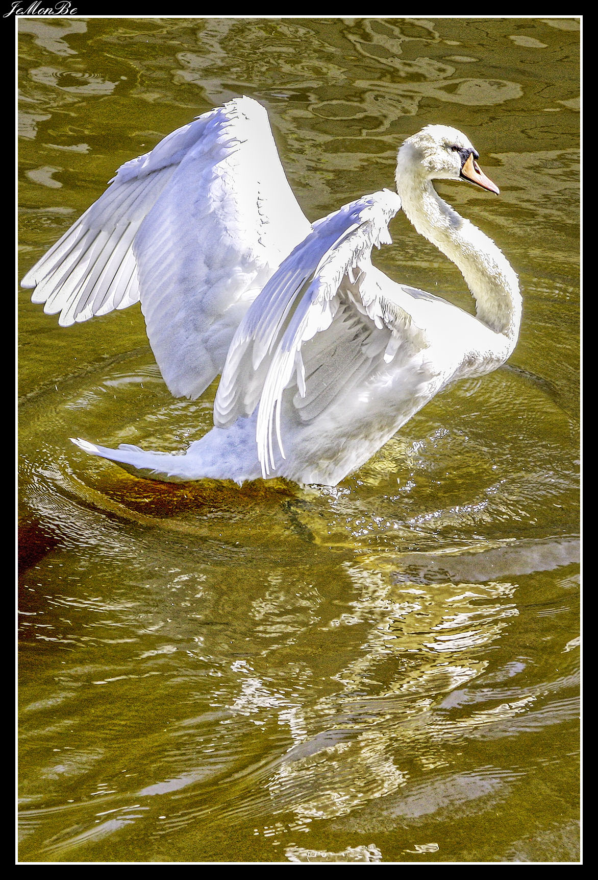 Cisne vulgar (Cygnus olor), esta gran anátida, el mayor de los cisnes europeos, de largo cuello y plumaje completamente blanco, posee unas cortas y fuertes patas de color negro, así como un pico anaranjado con los bordes negros y una gran protuberancia, también negra, en la base de la mandíbula superior. Los jóvenes, pardo-grisáceos y con el pico de color gris, adquieren el plumaje definitivo del adulto al segundo invierno de vida. El voluminoso cuerpo del cisne vulgar, unido a la escasa longitud de sus patas, hace que sus movimientos resulten bastante torpes en el suelo; no así sobre el agua, por donde se desplaza majestuosamente, o al ejecutar su potente vuelo, durante el cual adopta una postura muy característica, con el largo cuello estirado, que lo hace fácilmente reconocible.