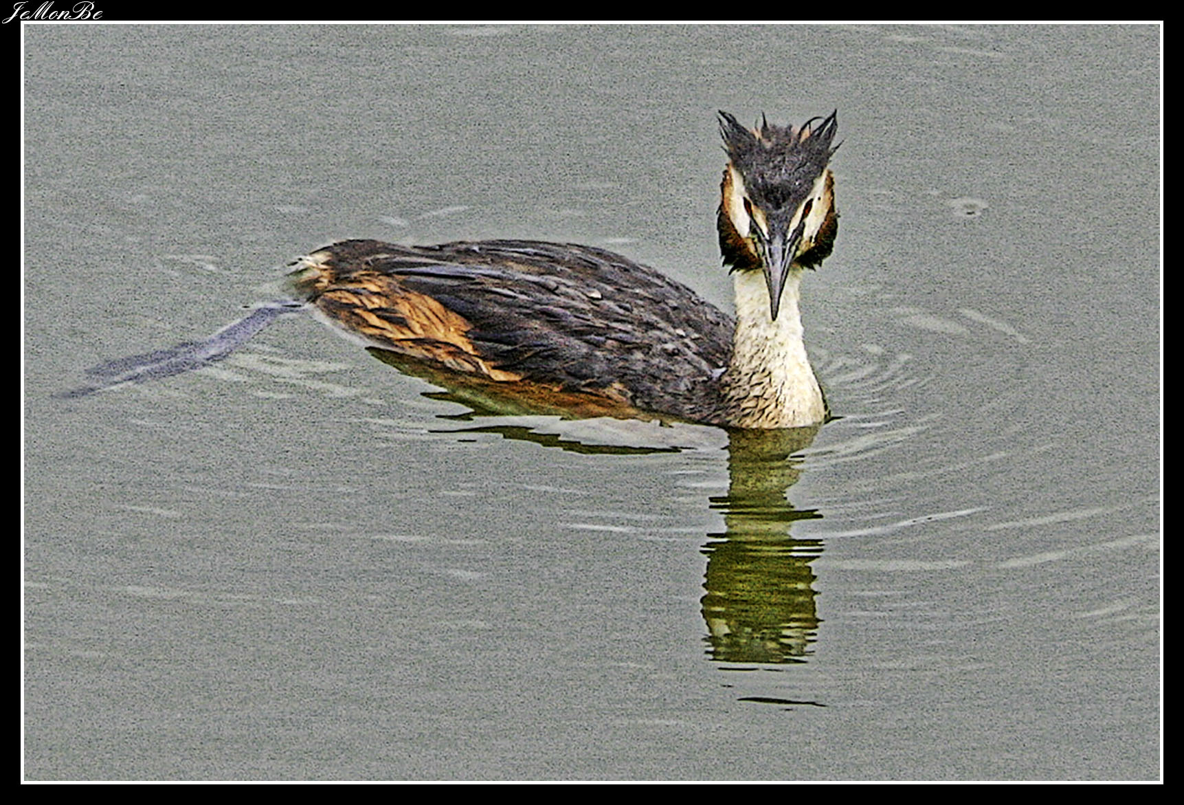 Somormujo lavanco (Podiceps cristatus), es el mayor de los somormujos que puede verse en España. Se trata de un ave elegante, de cuello estilizado, pico largo y apuntado, y cuerpo alargado. En verano luce un plumaje vistoso, con la parte superior de la cabeza negra, en la que destacan dos grupos de plumas a modo de penachos. De las mejillas salen plumas llamativas, alargadas, de tonos rojizos y negros. La zona que rodea los ojos es blanca, al igual que el cuello, el pecho y el vientre, lo que contrasta con el dorso oscuro y los flancos rojizos. El largo cuello constituye un buen rasgo diagnóstico. En vuelo se observa su esbelta complexión, con su largo cuello estirado, y su batir rápido de alas hace ver las zonas alares blancas a modo de destellos.
