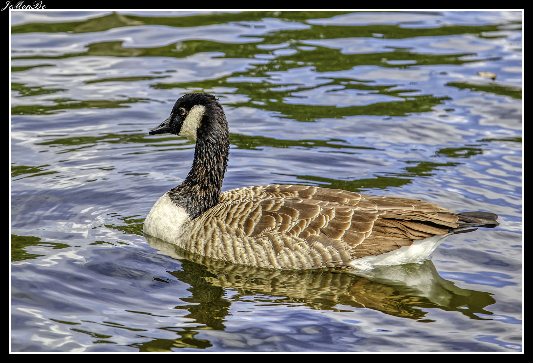 Barnacla canadiense (Branta canadensis), se trata de un ganso de gran tamaño, con cuello largo negro y una mancha gular blanca distintiva, en la cabeza que se extiende de la garganta a la región auricular. Debido a su potencial colonizador y constituir una amenaza para las especies autóctonas, esta especie ha sido incluida en el Catálogo Español de Especies Exóticas Invasoras.