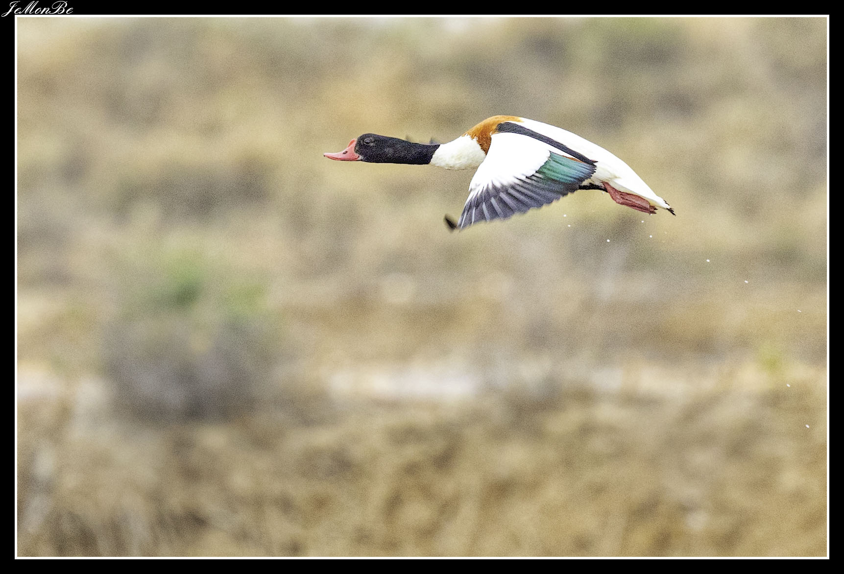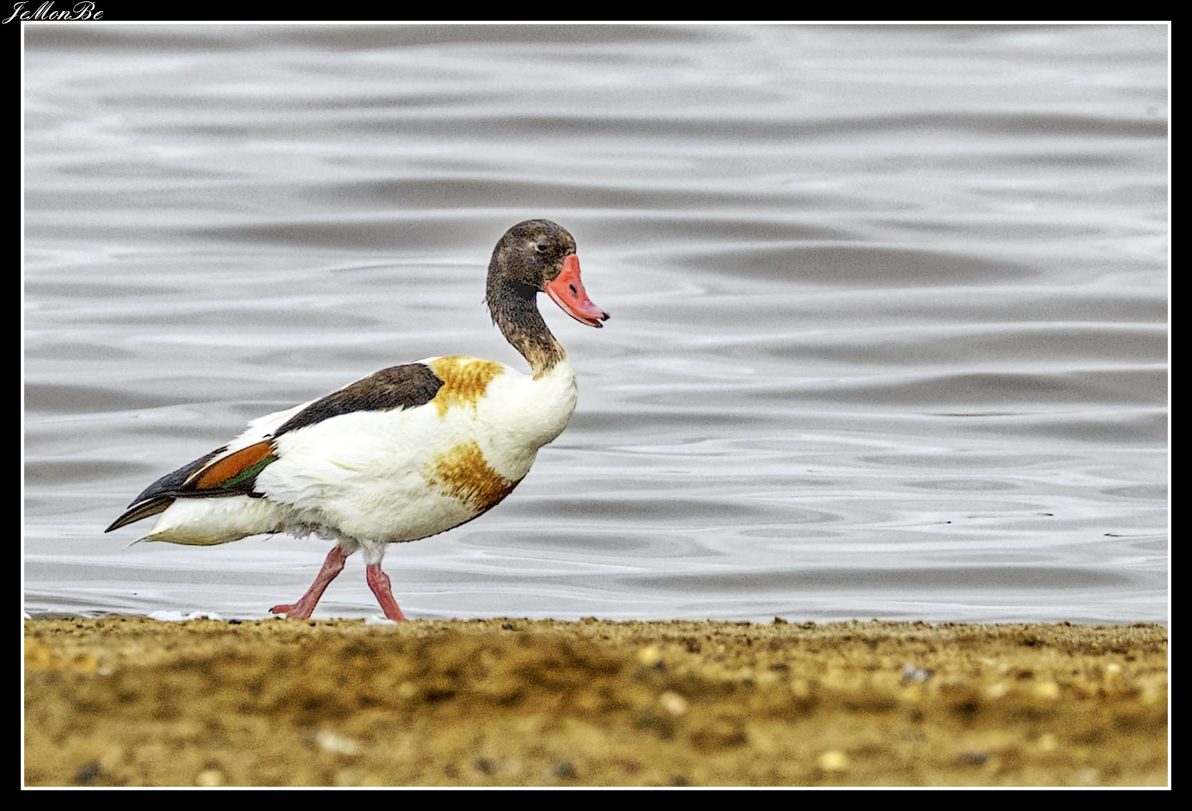 El tarro blanco (Tadorna tadorna), es un ave con aspecto intermedio entre pato y ganso. Su plumaje es principalmente blanco con zonas negras y de color castaño rojizo. Tiene la cabeza y la parte superior del cuello negras con irisaciones verdes. Presenta una ancha franja pectoral de color castaño rojizo. Su pico es rojo y sus patas son rosadas. Ambos sexos son similares, pero el macho presenta una protuberancia en la base del pico a modo de escudo frontal que junto con el pico incrementa la intensidad de su color en la época reproductora.