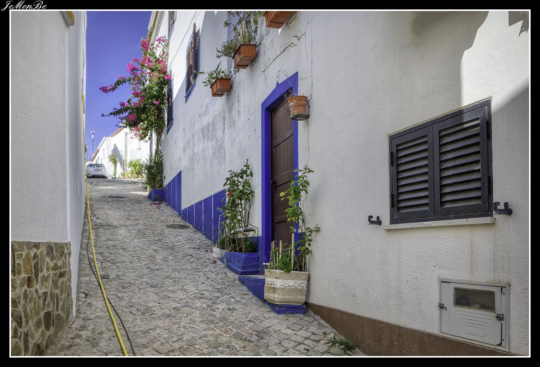 Alcoutim es un pequeño pueblo blanco en la orilla del rio Guadiana, repleto de calles pequeñas y tortuosas con el adoquinado típico portugués, casas blancas con marcos en puertas y ventanas de color azul o amarillo.